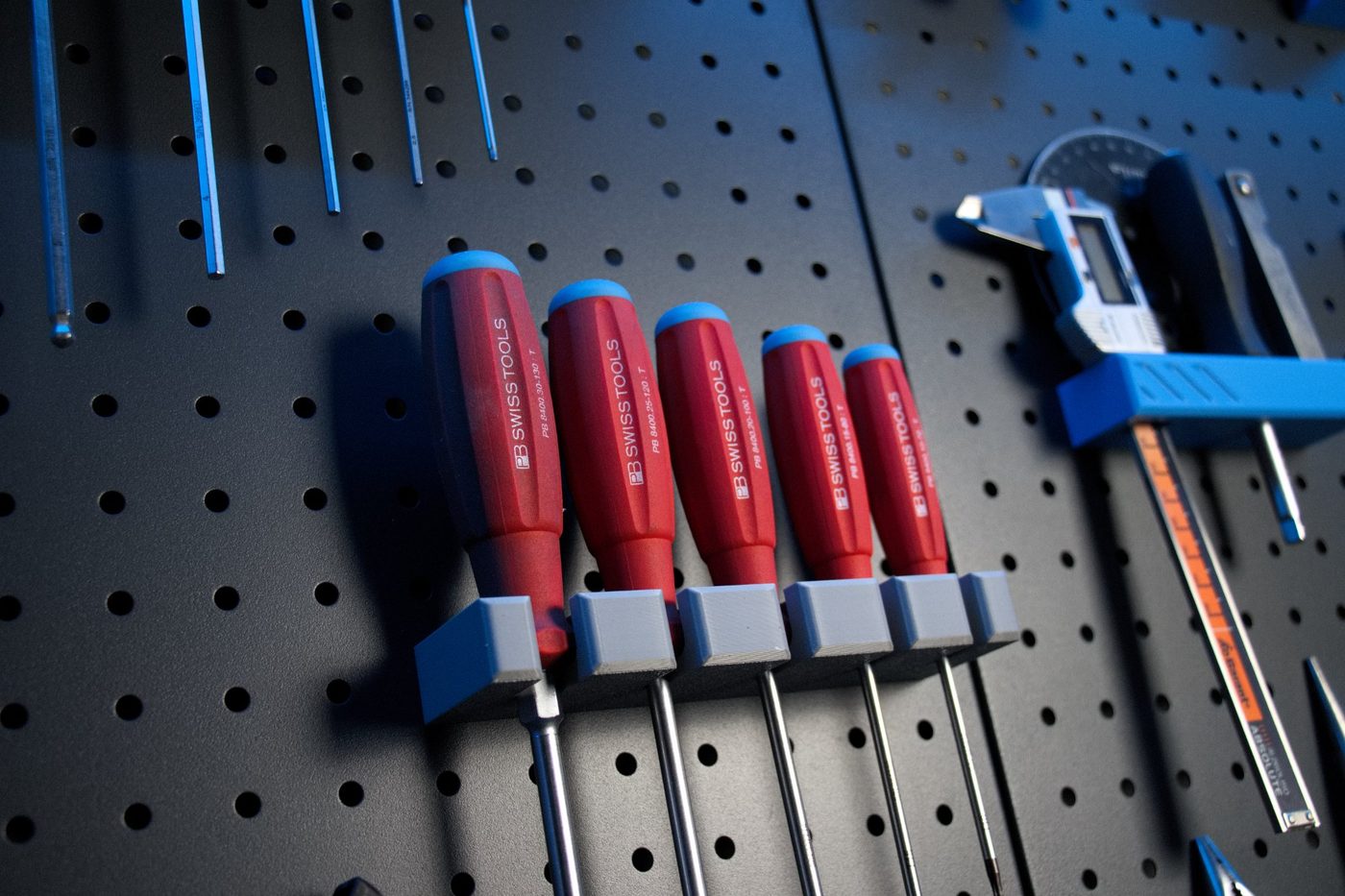 Massgefertigte Halterungen fuer Schraubenzieher, Zangen und Bits – angepasst an deine Werkzeuge und Wand.